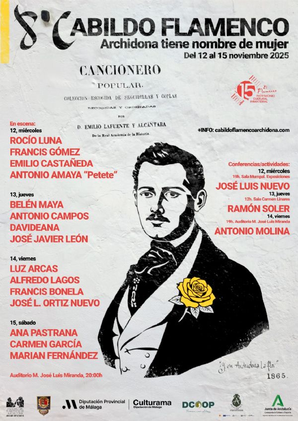 Archidona recupera la figura de Emilio LafuenteEl Ayuntamiento de Archidona ha presentado la octava edición del Cabildo Flamenco, que se celebrará del 12 al 15 de noviembre de 2025. El evento, bajo el lema «Archidona tiene nombre de mujer», centrará este año su programación en la figura del folclorista local del siglo XIX, Don Emilio Lafuente y Alcántara, y su 'Cancionero Popular'