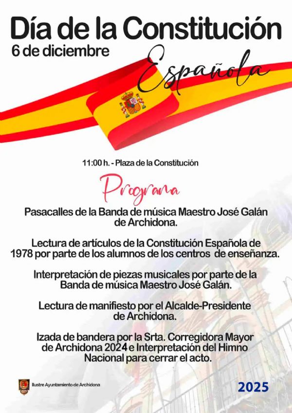 Acto Institucional Día de la Constitución EspañolaLa celebración del Día de la Constitución Española el día 6 de diciembre de 2025, será un acto institucional solemne y participativo y se llevará a cabo en la Plaza de la Constitución.