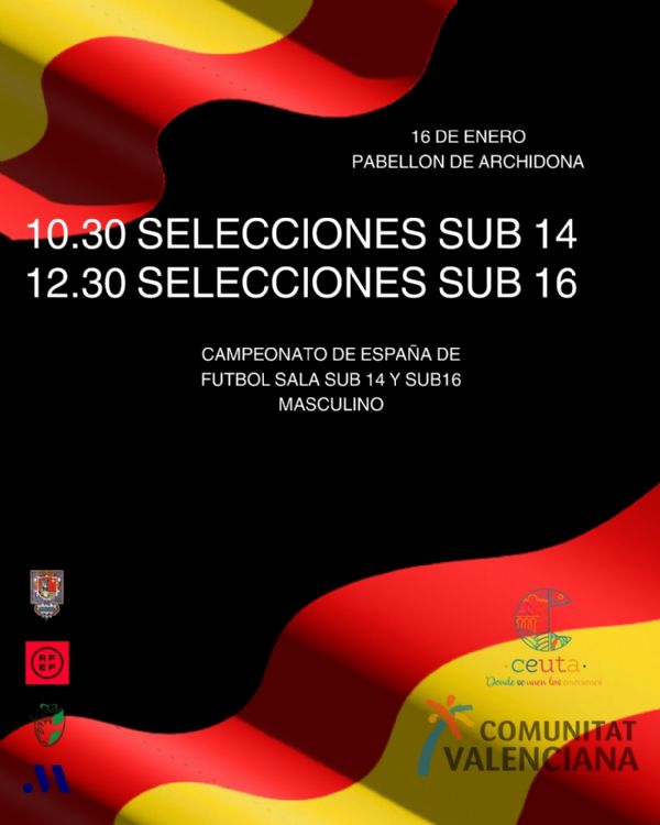 Campeonato de España de Fútbol SalaLas selecciones de Ceuta y la Comunitat Valenciana se ven las caras el día 16 de enero, en una jornada doble que promete el mejor nivel juvenil nacional.